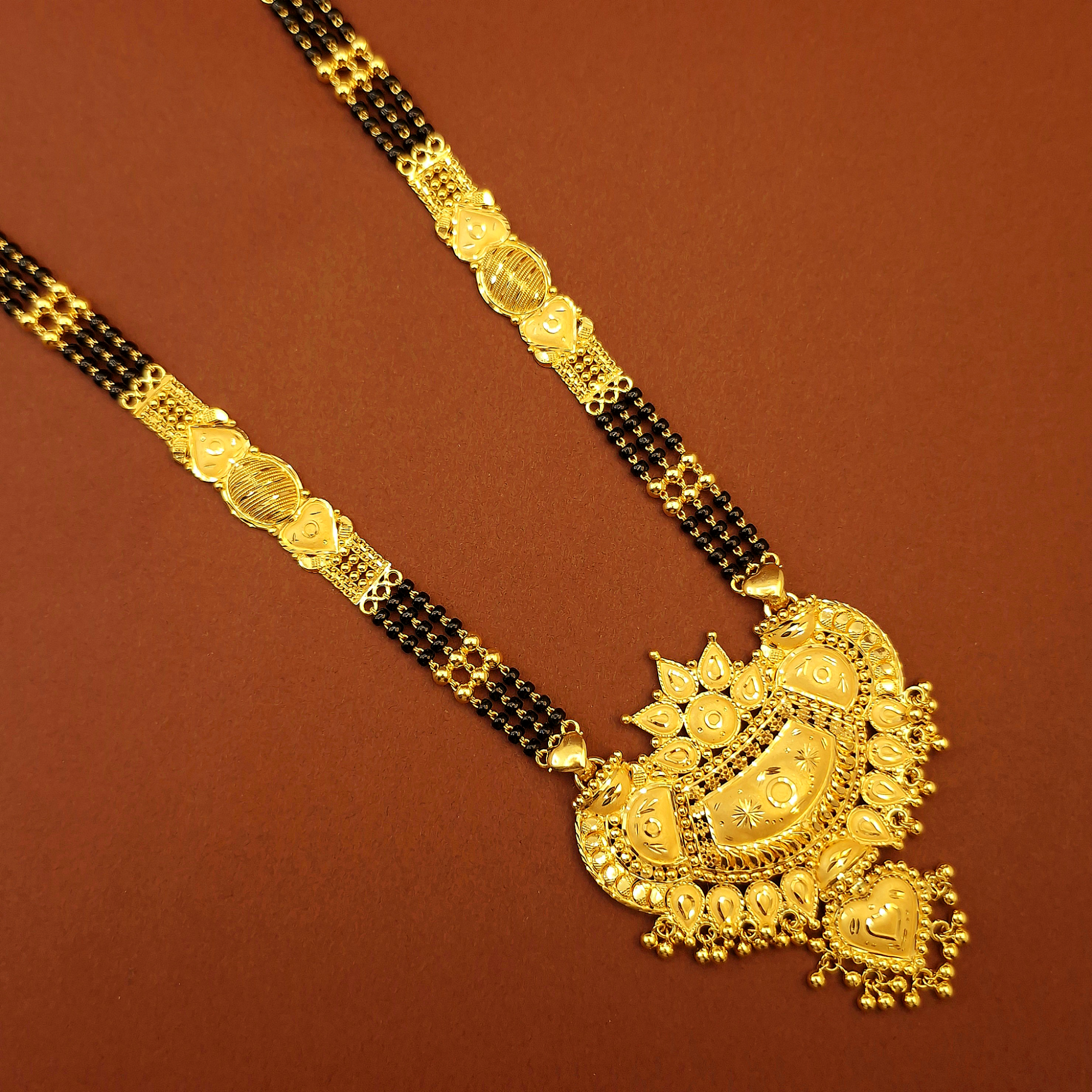 Celebrate tradition with elegance through our beautifully crafted Gold Black Beads Chain, a timeless symbol of love, protection, and marital commitment. Popularly known as Mangalasutra in North India and Nallaposalu in South India, this sacred ornament blends cultural heritage with modern sophistication.