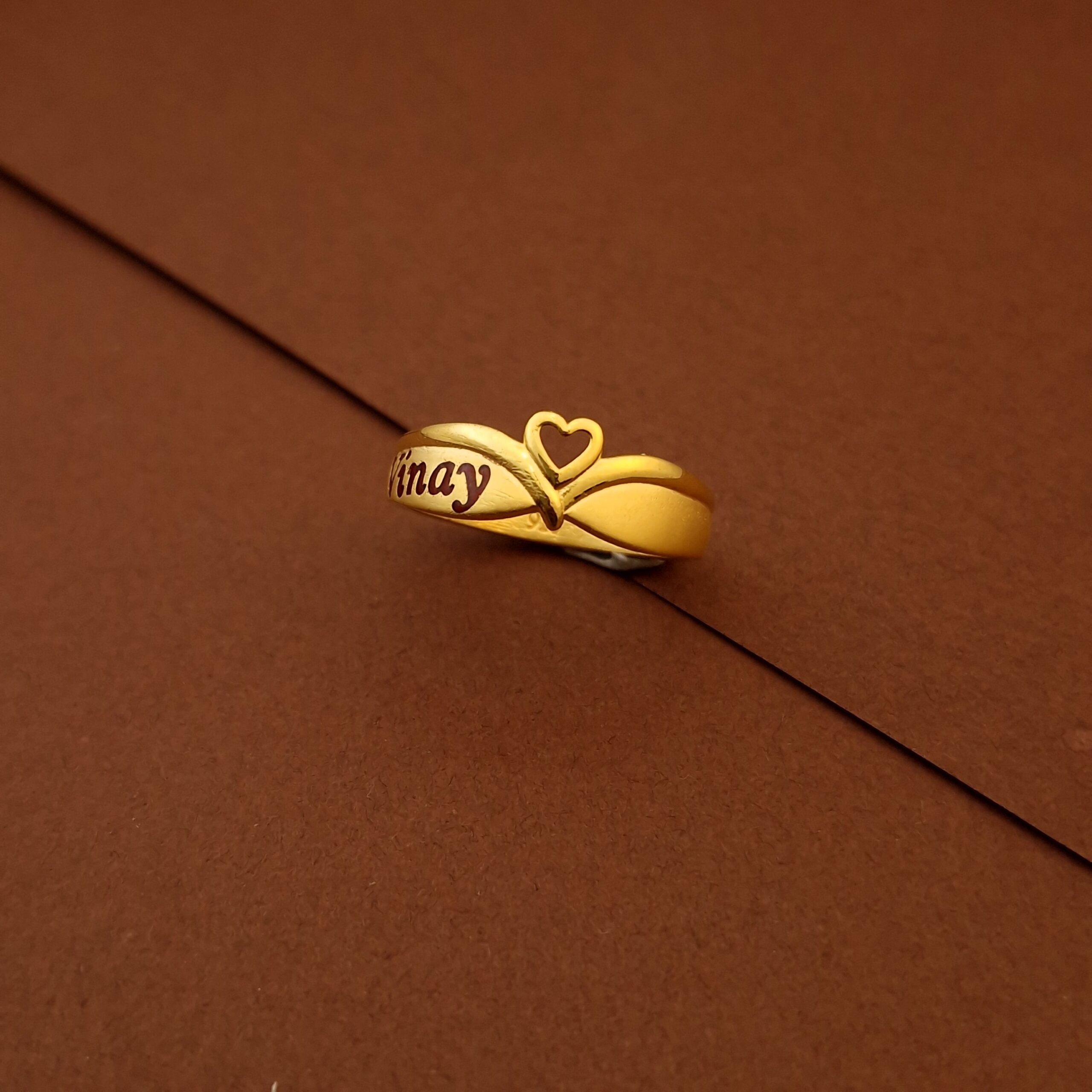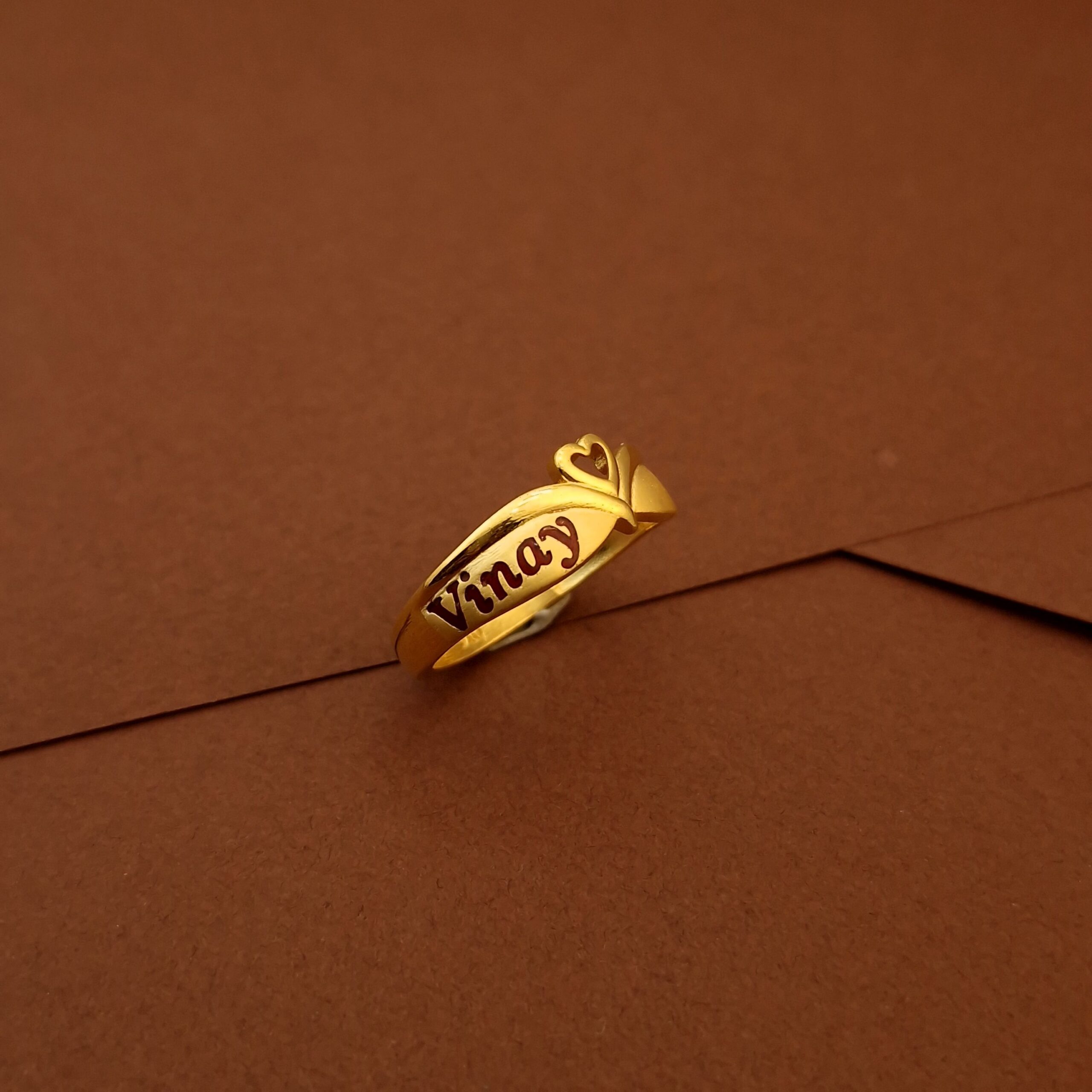 Gold Heart Ring: Crafted in pure 22K hallmarked gold, this ring is a perfect blend of elegance and durability. Its sleek design makes it versatile for daily wear while also being a timeless piece for special occasions. The smooth finish and fine craftsmanship highlight the richness of gold, making it a treasured addition to your jewellery collection., name letter, vinay letter, intial ring, letter ring, alphabets ring, heart ring