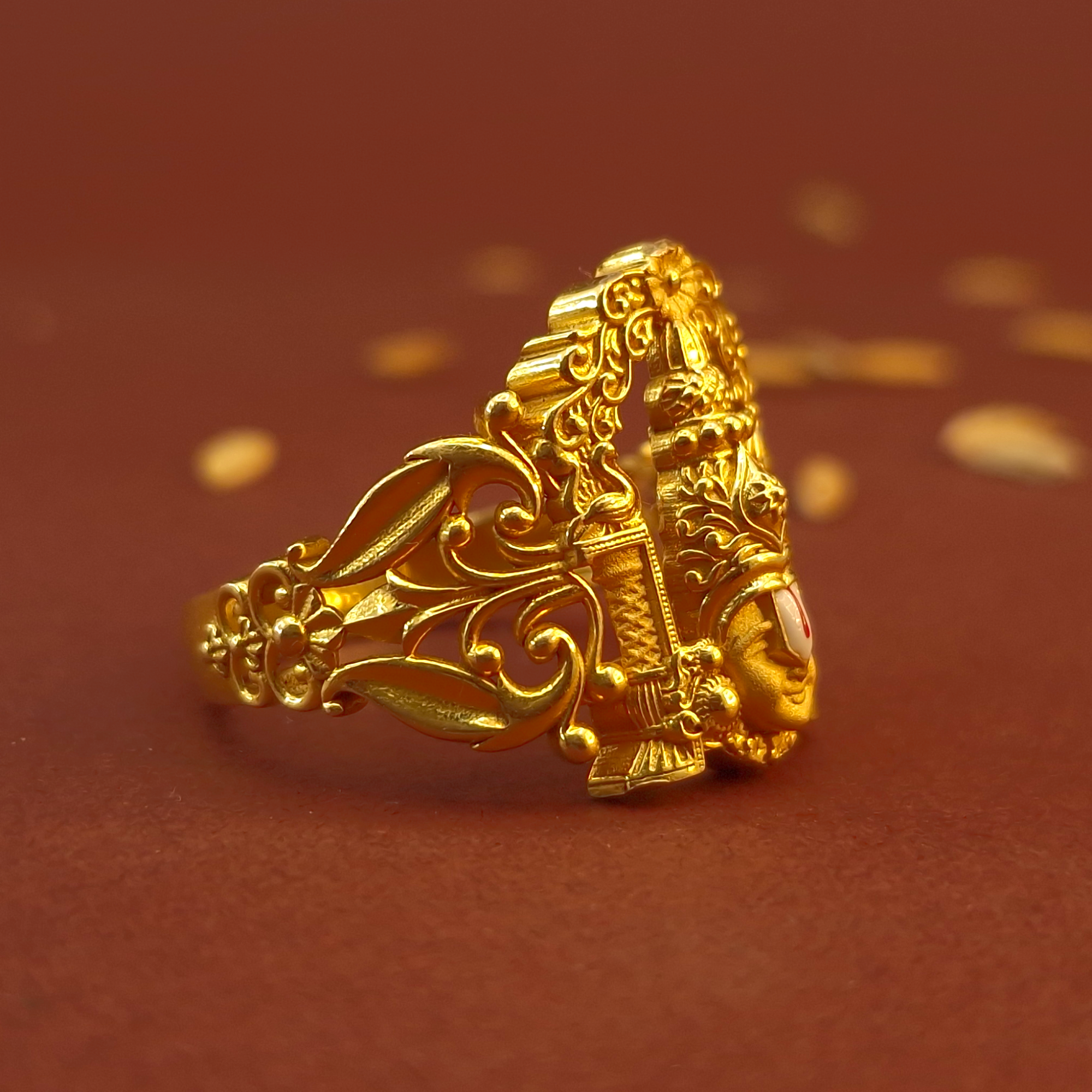 Gold Venkateswara Swamy Ring : Timeless and sophisticated, this beautifully crafted gold ring adds a touch of elegance to any look. Made from high-quality gold, it features a sleek, polished finish perfect for everyday wear or special occasions. Its classic design makes it a versatile piece that complements any style.