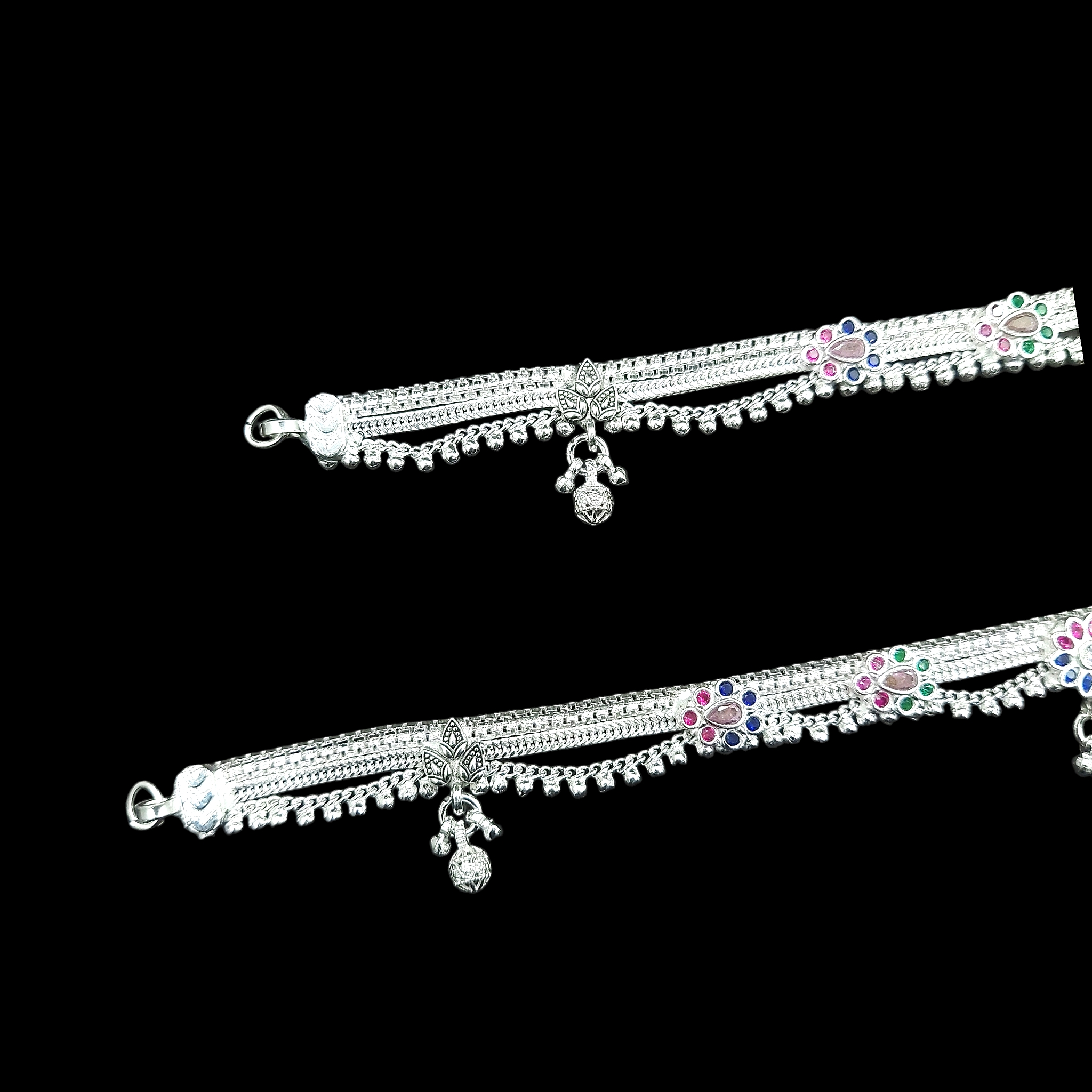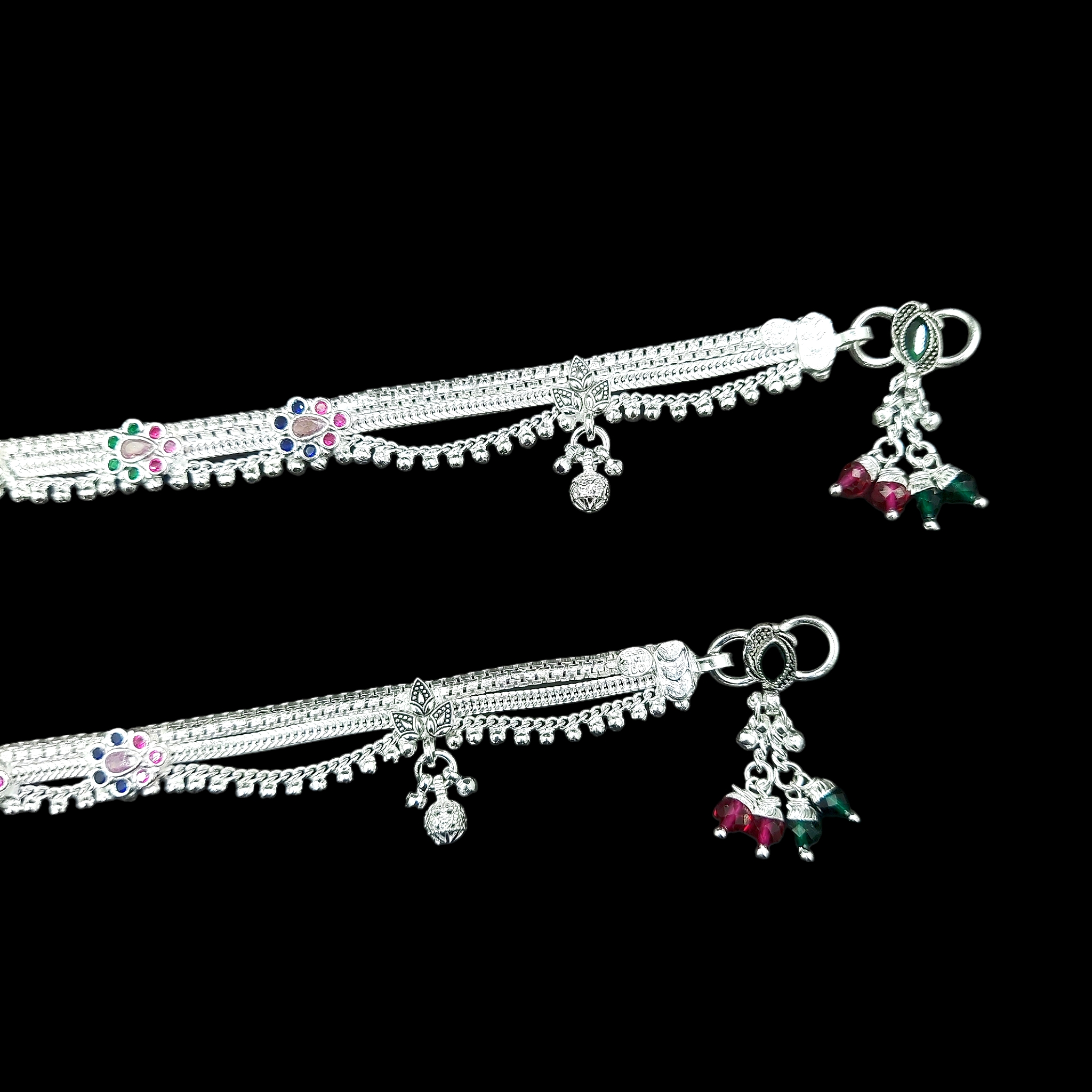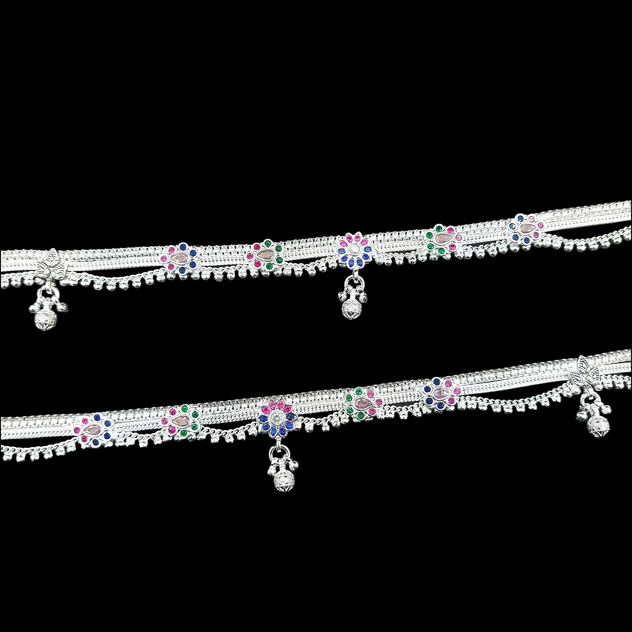 silver anklet features intricate floral and filigree motifs, each one handcrafted by skilled artisans. The polished sheen of the silver will catch the light with every step, making your legs shine. Surprise someone special with this elegant gift and watch their face light up with delight.