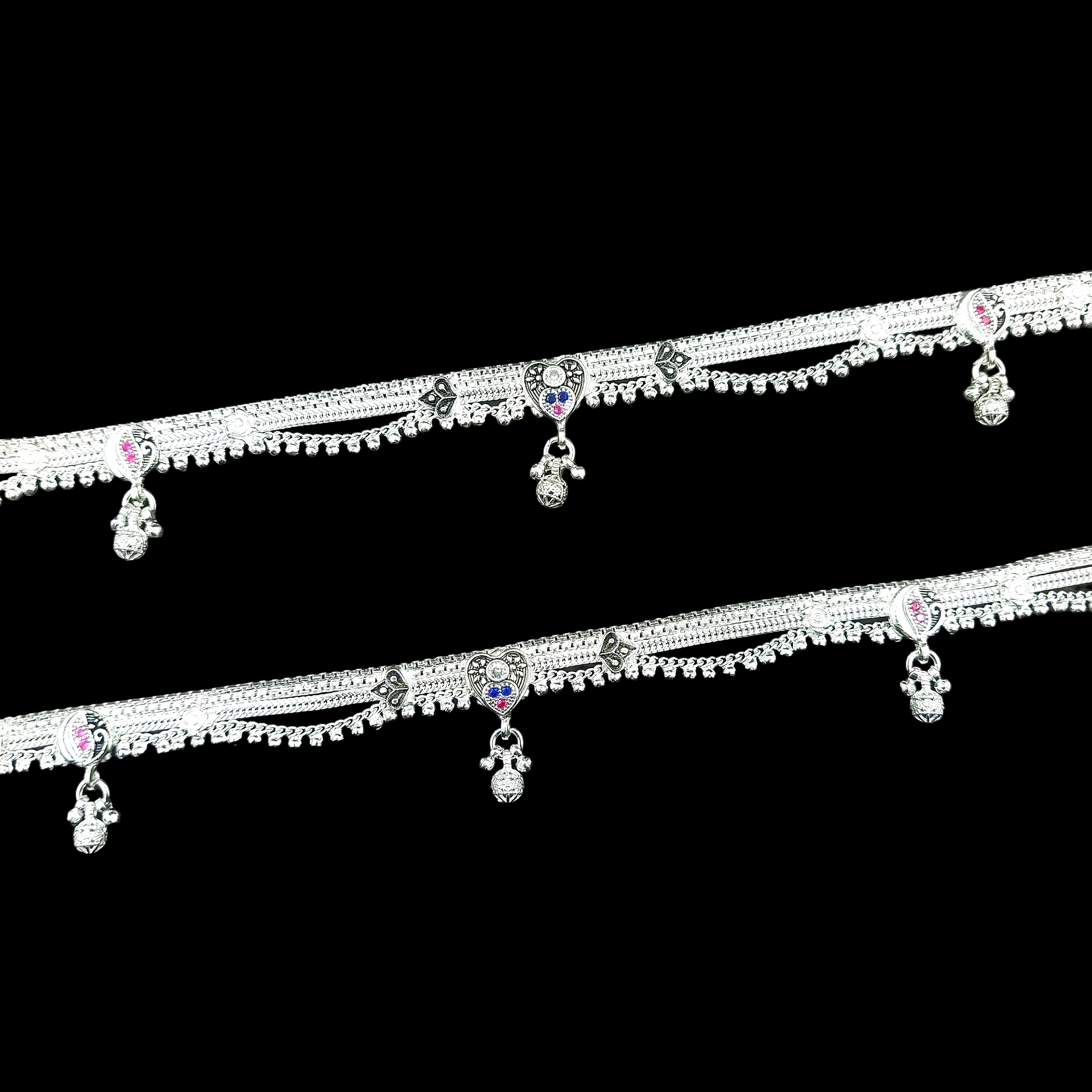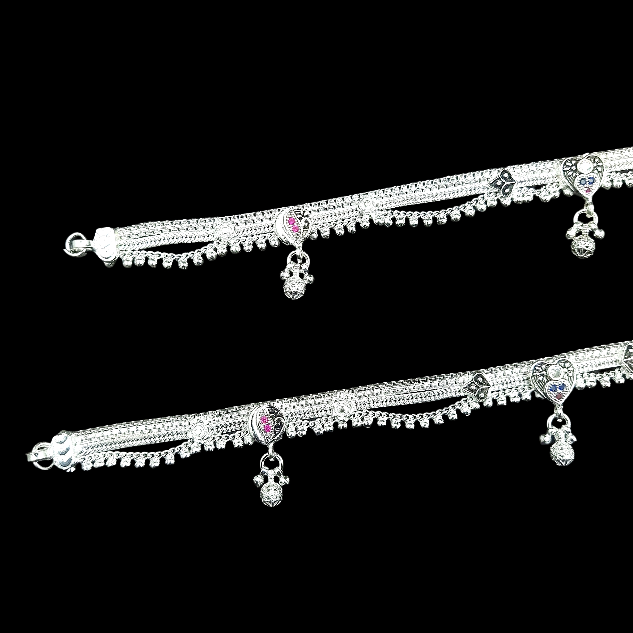 silver anklet features intricate floral and filigree motifs, each one handcrafted by skilled artisans. The polished sheen of the silver will catch the light with every step, making your legs shine. Surprise someone special with this elegant gift and watch their face light up with delight.